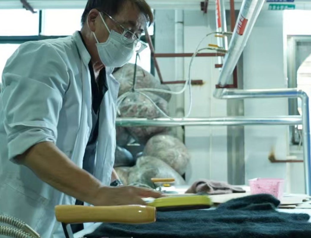 Yoshinobu Ishikawaは、ニット製品の管理、生産、技術開発において40年以上の経験を持ち、特にカシミヤやウールの洗浄およびフェルト化技術において卓越した技術を有しています。過去20年間、彼は独自のブラッシング技術とアンチピリング処理技術を磨き上げ、これによりDORAVIIEでは柔らかさと耐久性を兼ね備えた、世界でも最高品質といえるカシミヤを提供しています。