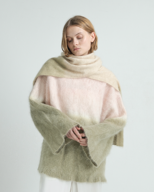 Plant Dye Japanese brushing Cashmere Scarf - Green