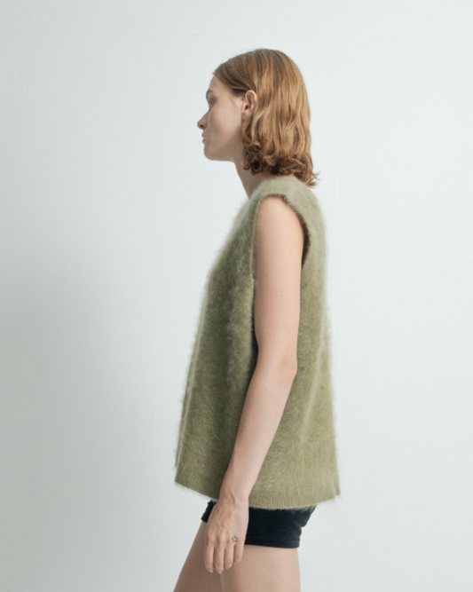 Plant Dye Japanese brushing Cashmere Vest - Green