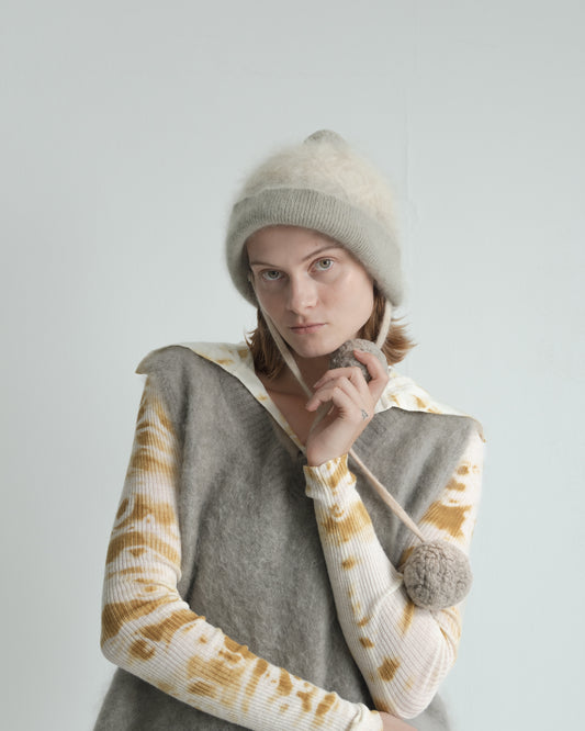 Plant Dye Japanese brushing Cashmere Hat - Grey
